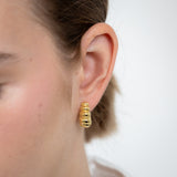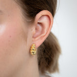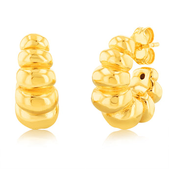 Sterling Silver Gold Plated Ribbed J Shaped 3/4th Hoop Earrings