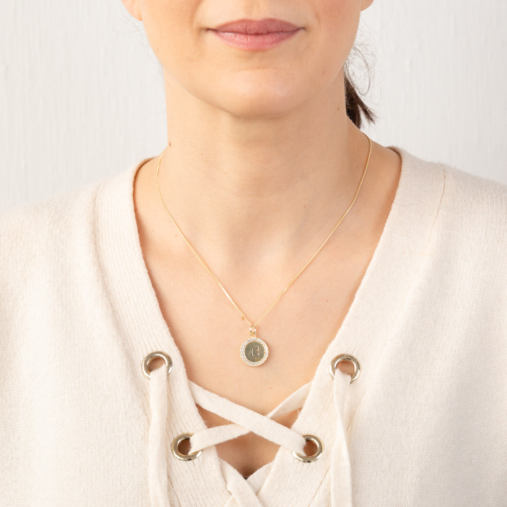 Sterling Silver Gold Plated Round Initial "C" Pendant On 45cm Chain