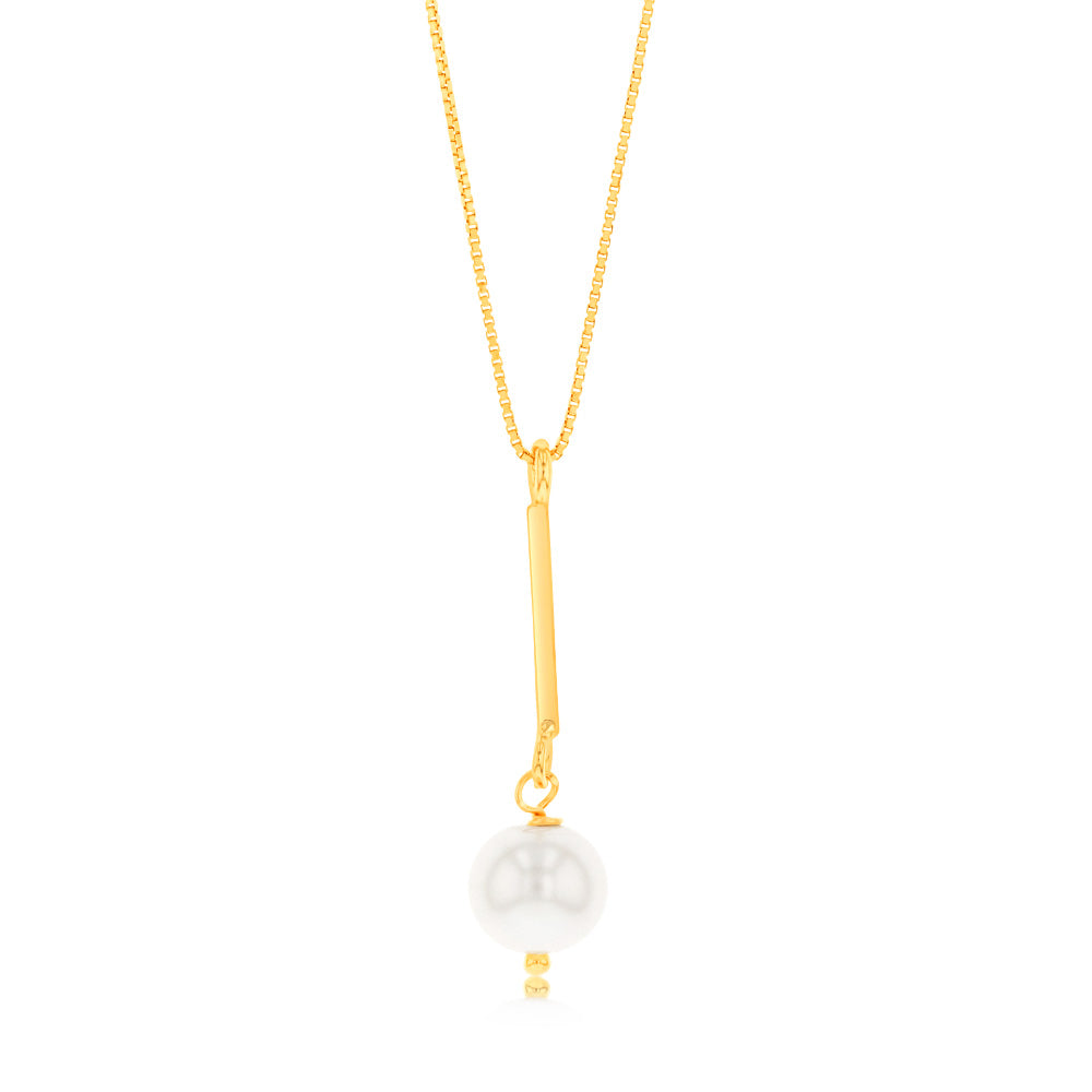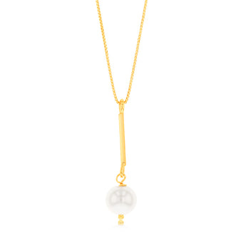 Sterling Silver Gold Plated Synthetic Pearl Pendant On 42+3cm Chain