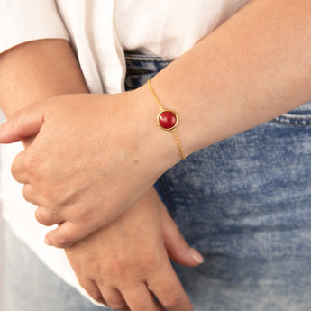 Sterling Silver Gold Plated Synthetic Red Coral Charm 16+3cm Bracelet