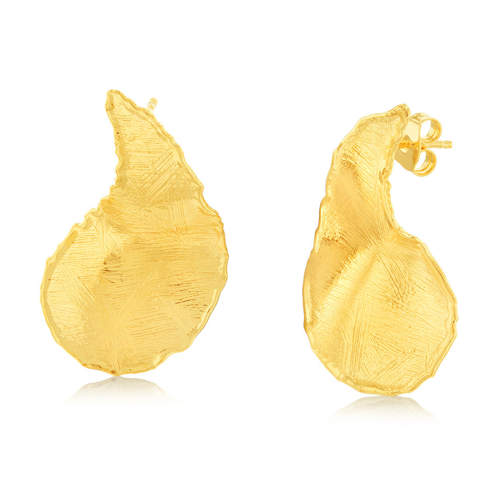 Sterling Silver Gold Plated Textured Inverted Comma Stud Earrings