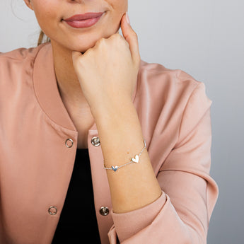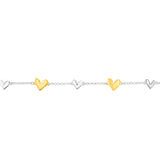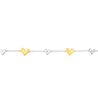 Sterling Silver Gold-Plated Two-Tone Heart Charm 17+3cm Bracelet