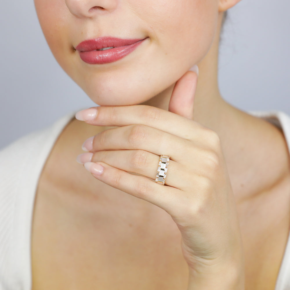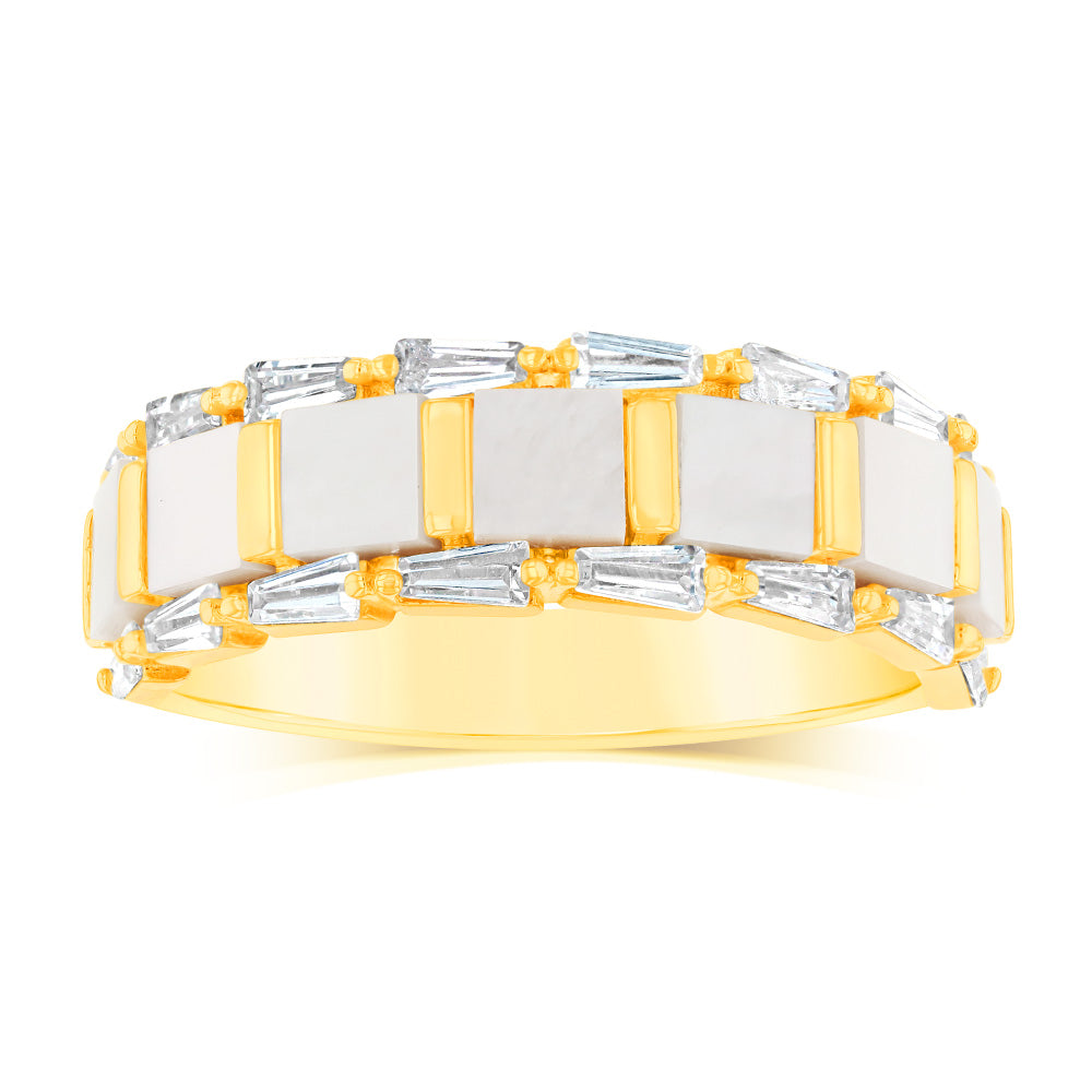 Sterling Silver Gold Plated White Shell Pearl Fancy Ring