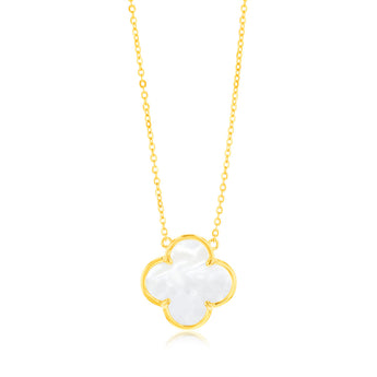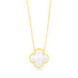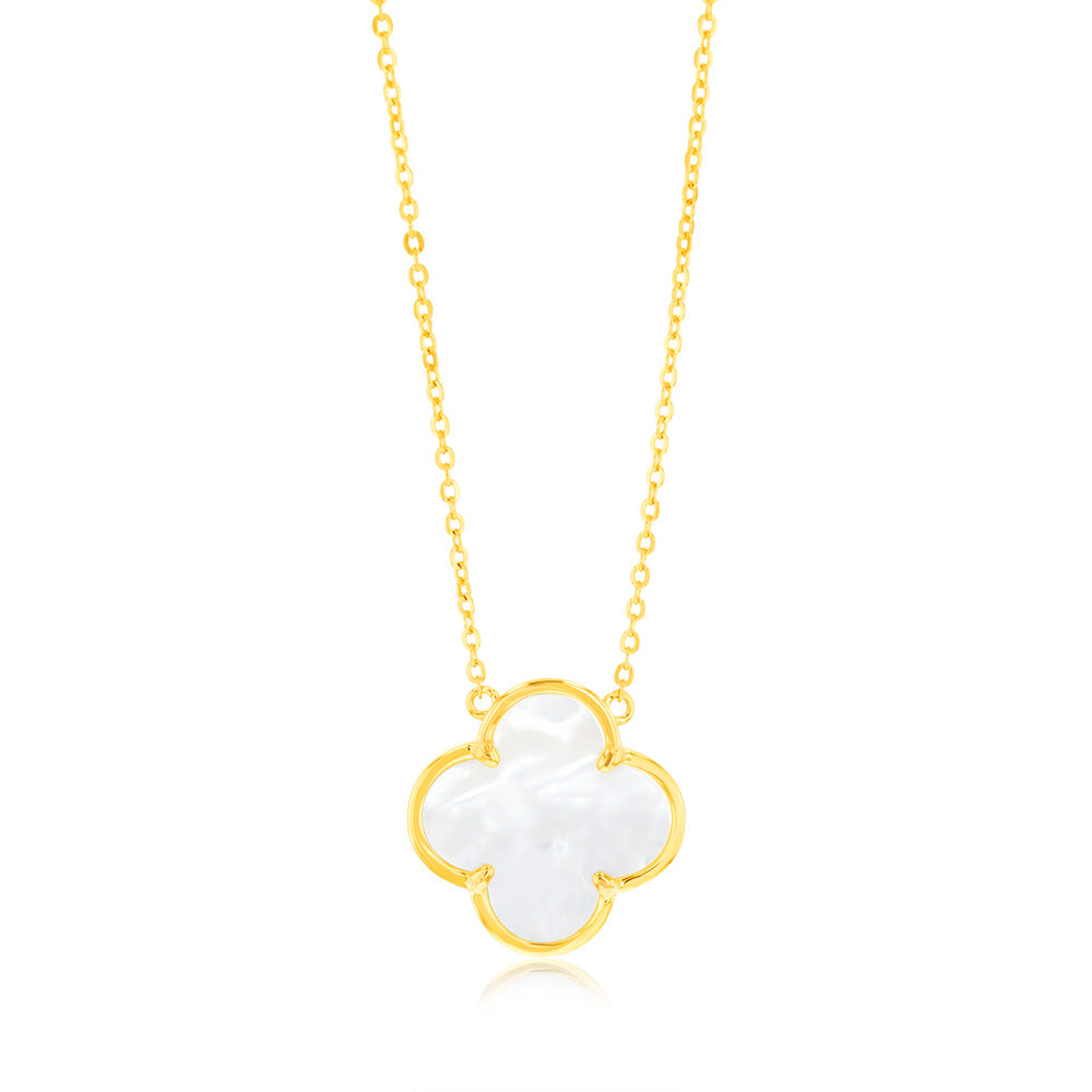 Sterling Silver Gold Plated White Shell Pearl Four Leaf Clover Pendant On Chain