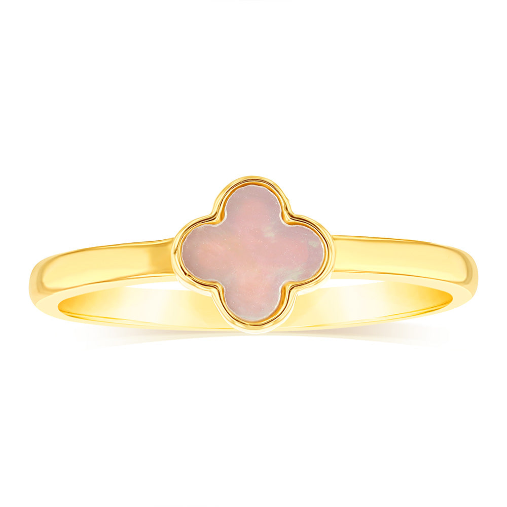 Sterling Silver Gold Plated White Shell Pearl Four Leaf Clover Ring