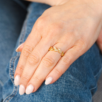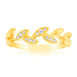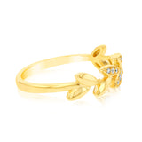 Sterling Silver Gold Plated White Zirconia Leaf Ring