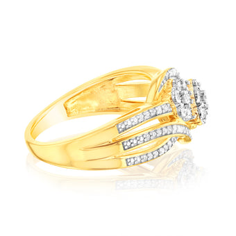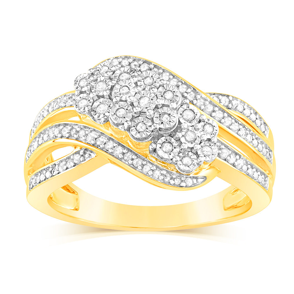 Sterling Silver Gold Plated Wrap Around Ring in 1/5 Carat Natural Diamonds