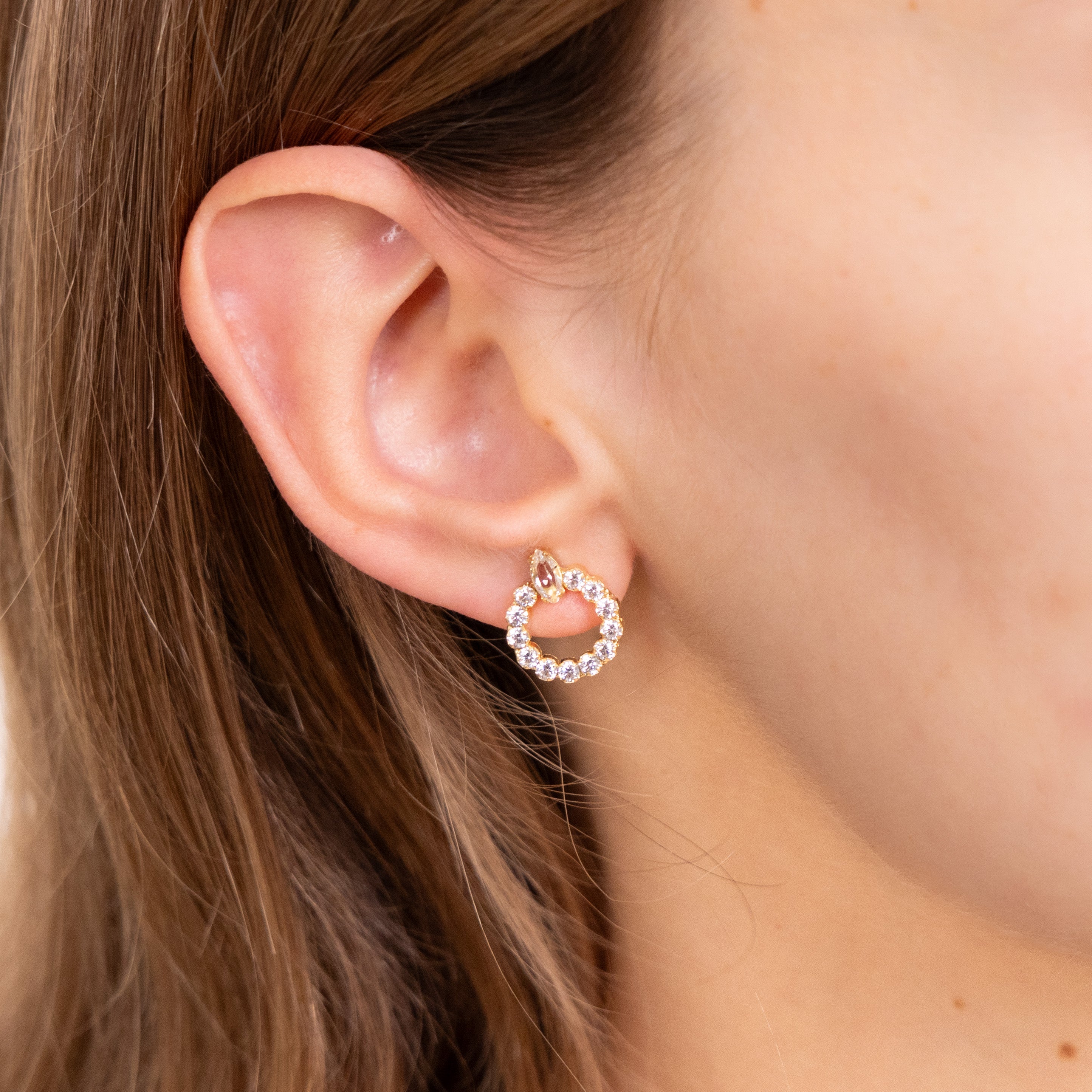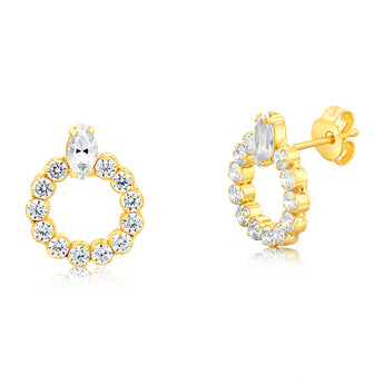 Sterling Silver Gold Plated Zirconia Circle Of Life Stud Earrings
