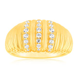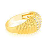 Sterling Silver Gold Plated Zirconia Polished Ribbed Ring