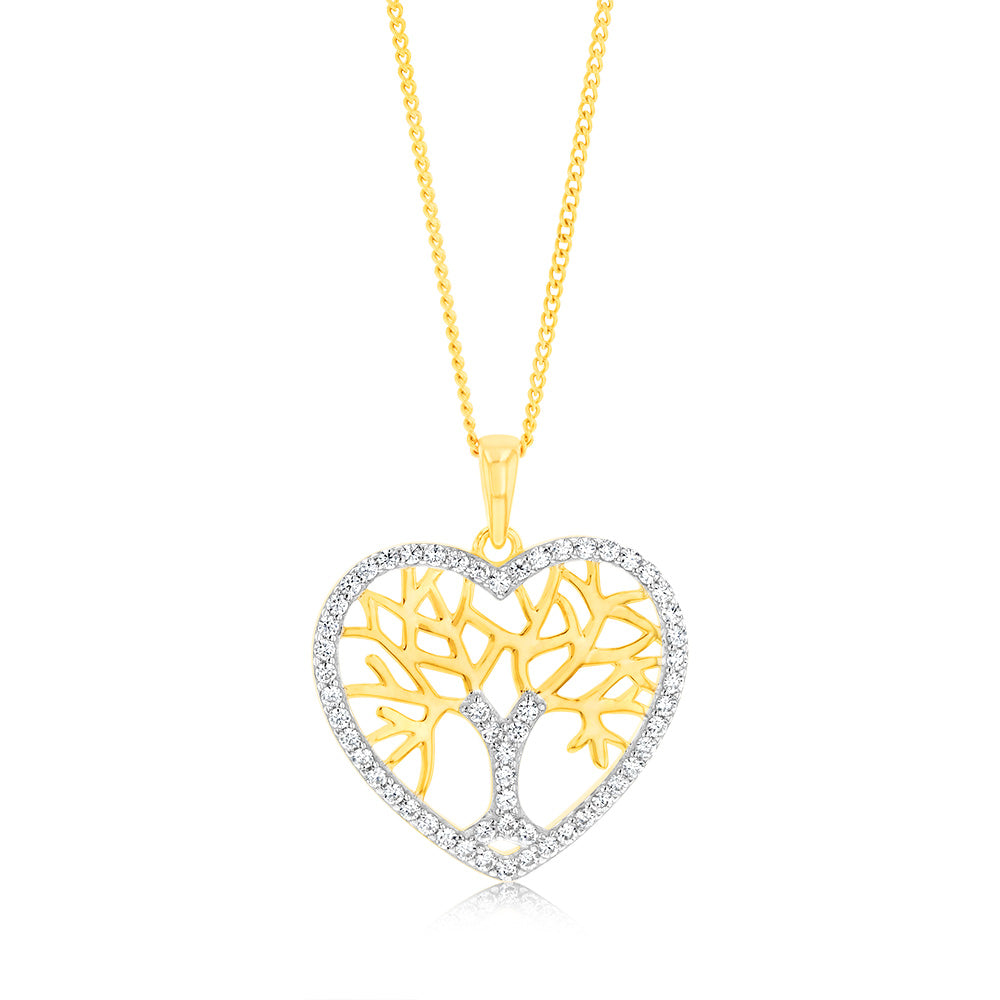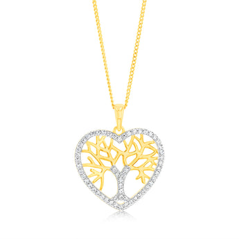 Sterling Silver Gold Plated Zirconia Tree Of Life Heart Pendant