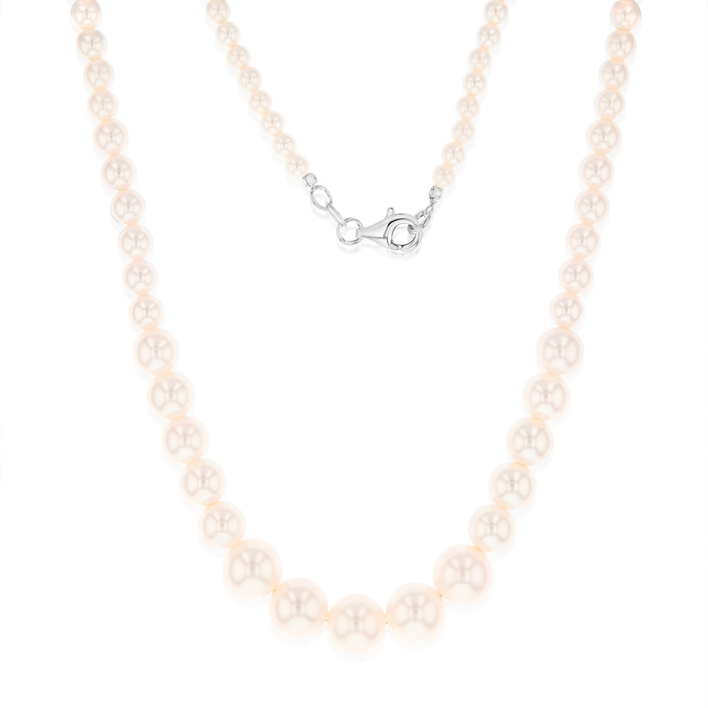 Sterling Silver Graduating Simulated Pearl 41cm Chain