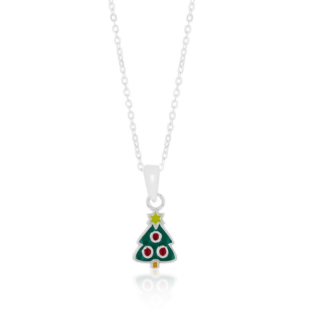 Sterling Silver Green Enamel Christmas Tree Pendant On 45cm Chain