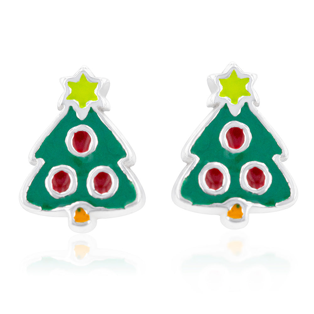 Sterling Silver Green Enamel Christmas Tree Stud Earring