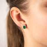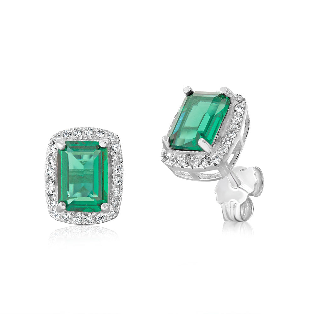 Sterling Silver Green & White Zirconia Rectangle Stud Earrings