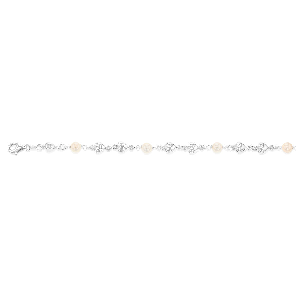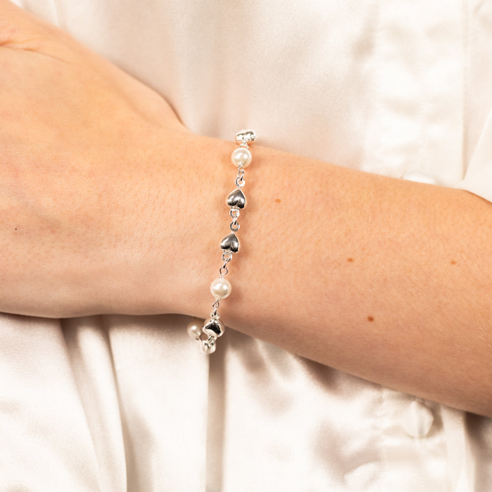 Sterling Silver Heart And Bead Charm 19cm Bracelet