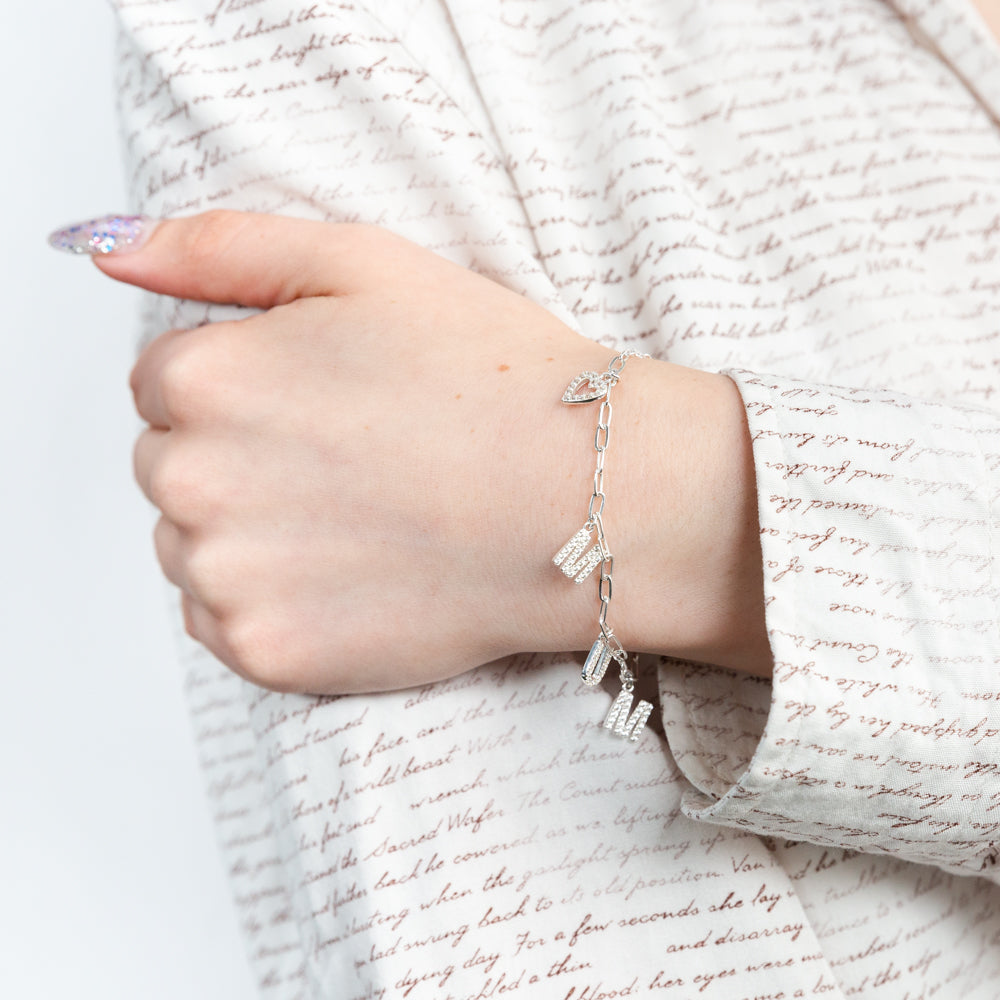 Sterling Silver Heart And Mum On 16+3cm Bracelet
