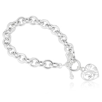 Sterling Silver Heart Charm FOB Bracelet 19cm