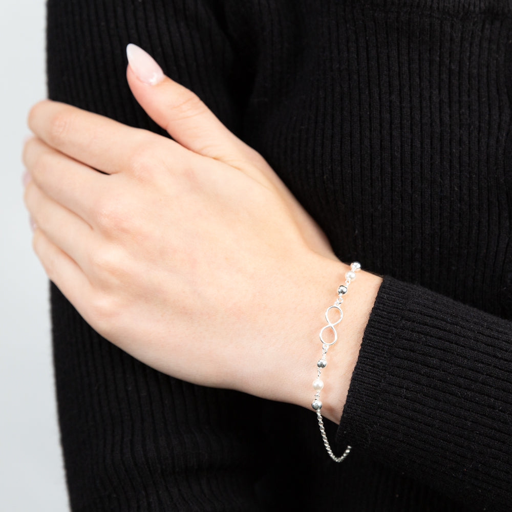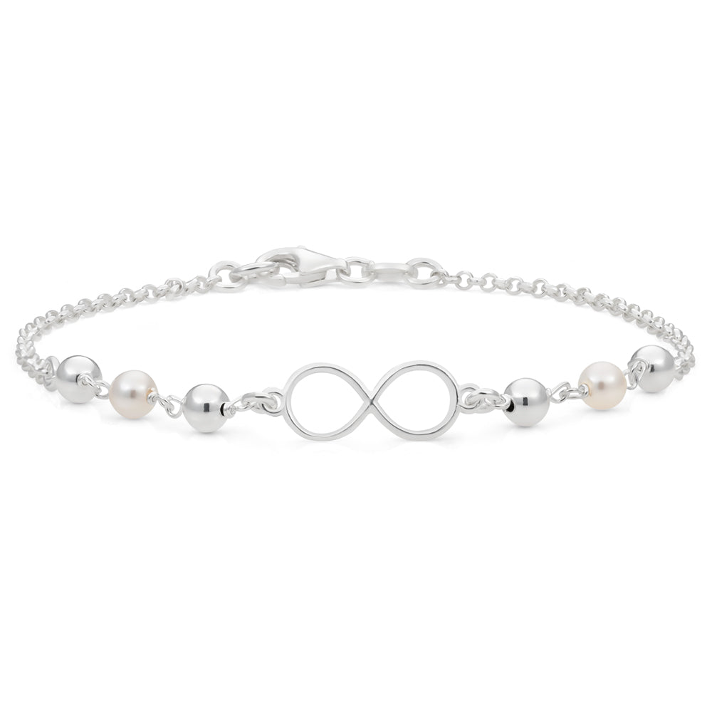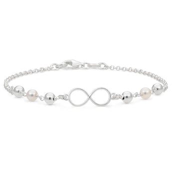 Sterling Silver Infinity and Simulated Pearl Fancy Bracelet 19cm
