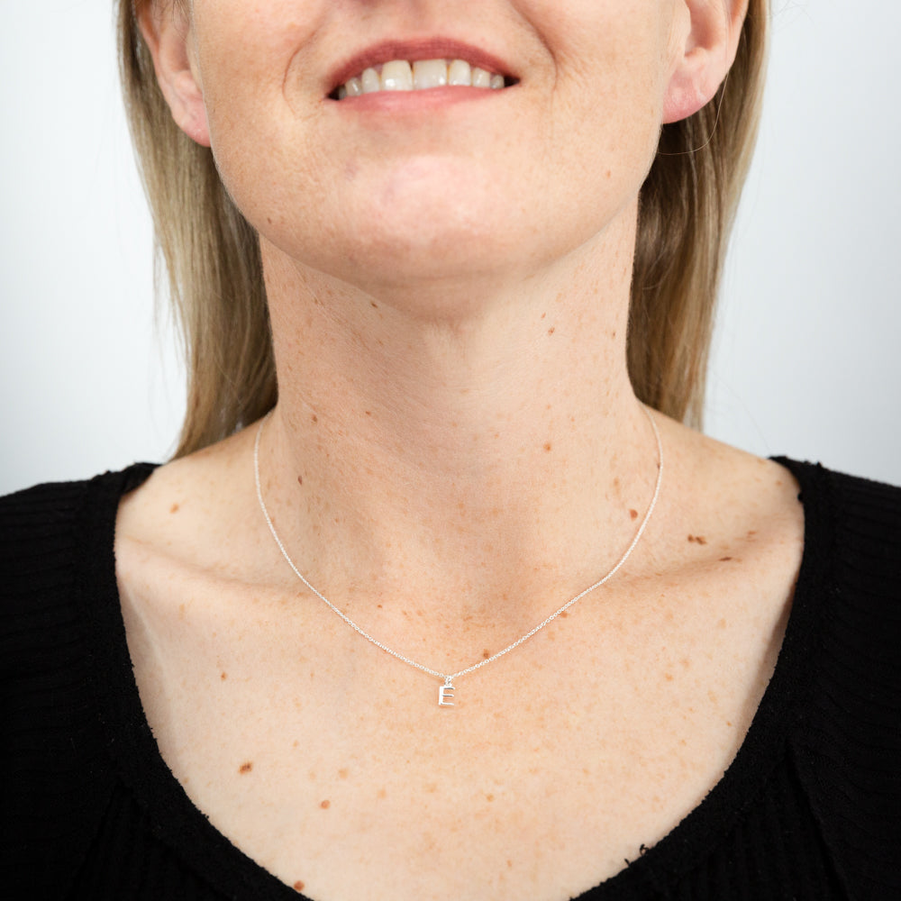 Sterling Silver Initial Letter "E" Pendant On 45cm Chain