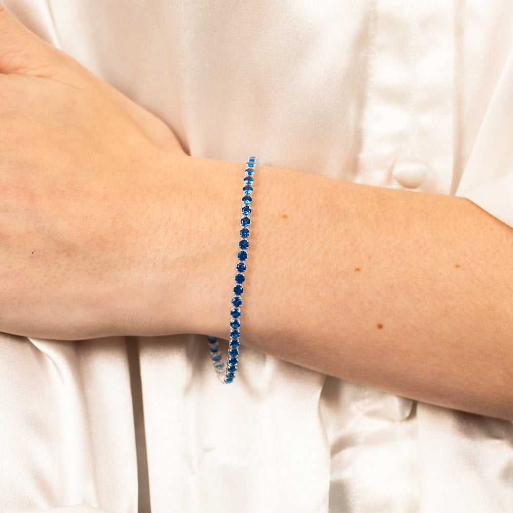 Sterling Silver Ink Blue Zirconia 19cm Tennis Bracelet