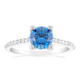Sterling Silver Ink Blue Zirconia 4 Claw Ring