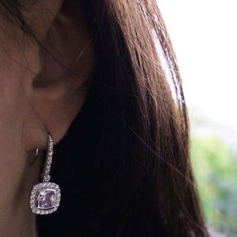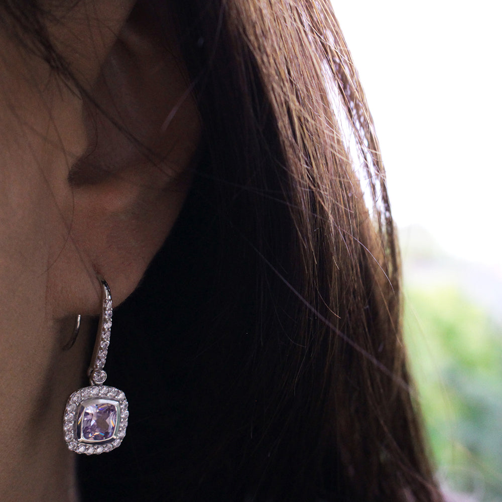 Sterling Silver Lavender and White Zirconia Sqaure Drop Earrings
