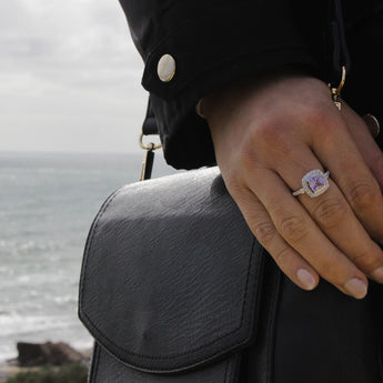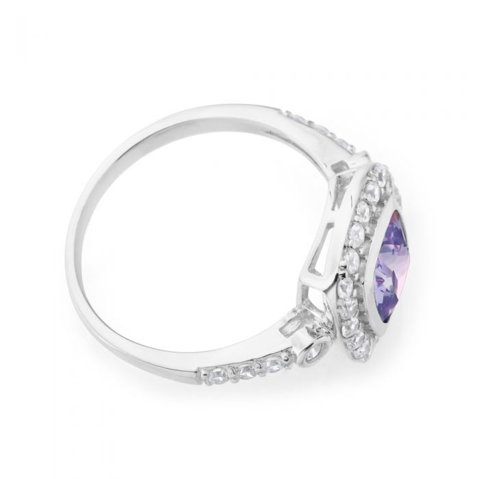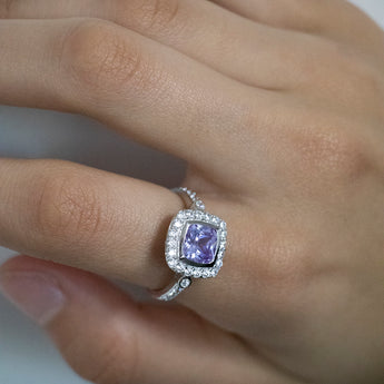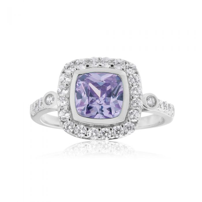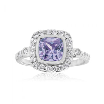 Sterling Silver Lavender and White Zirconia Square Halo Ring