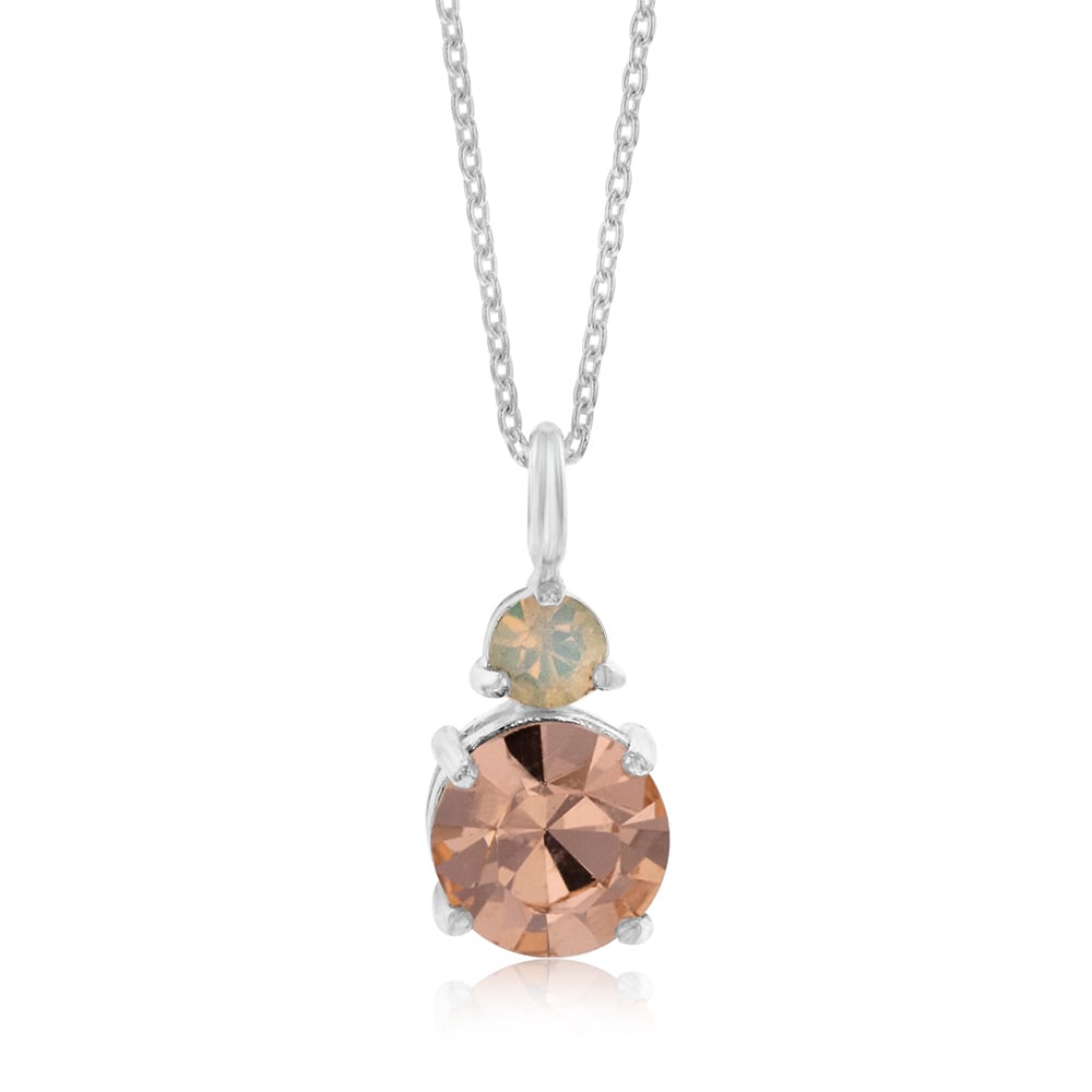 Sterling Silver Light Peach Stone And White Opal Glass Pendant With 45cm Chain
