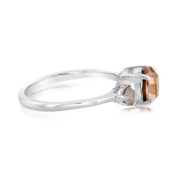 Sterling Silver Light Peach Stone And White Opal Glass Ring
