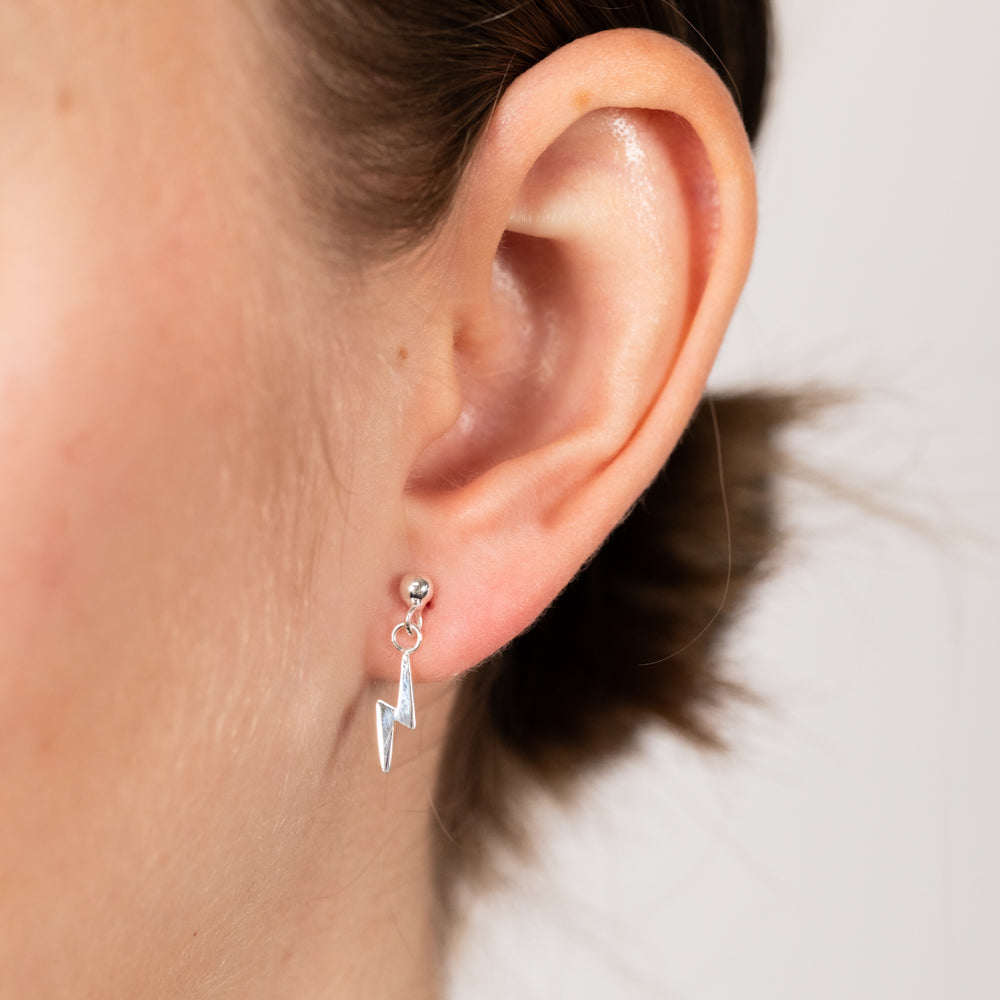 Sterling Silver Lightning Bolt Drop Earrings