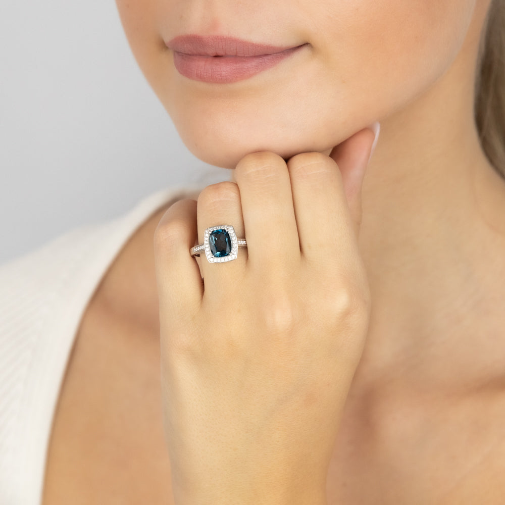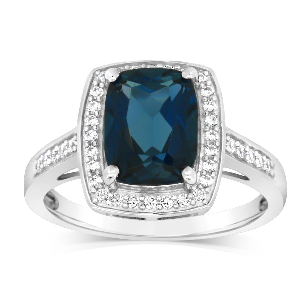 Sterling Silver London Blue Topaz & 38Cubic Zirconia Ring