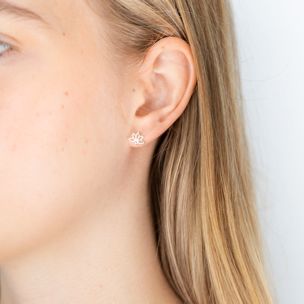 Sterling Silver Lotus Stud Earrings