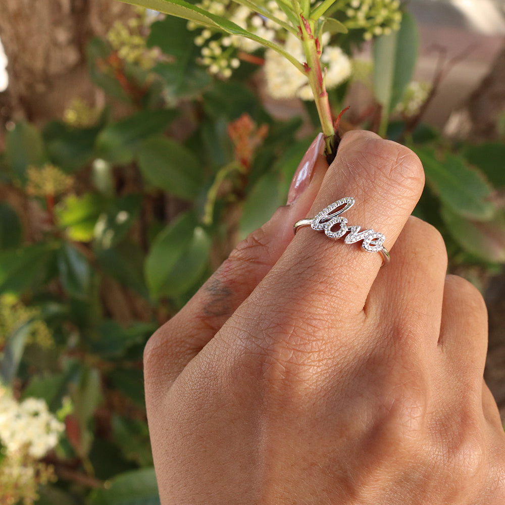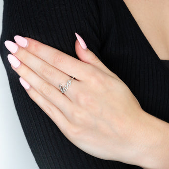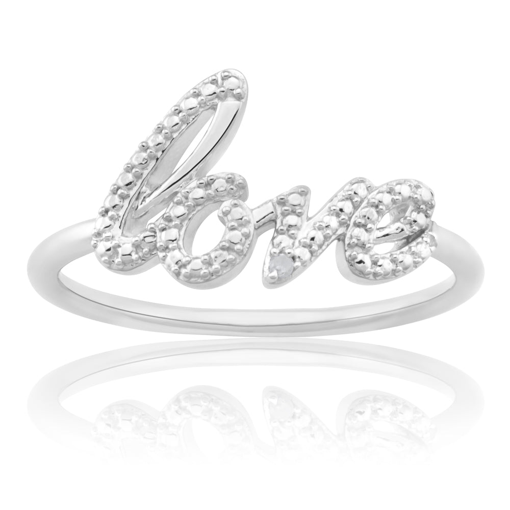 Sterling Silver Love Diamond Ring with 1 Brilliant Cut Diamond