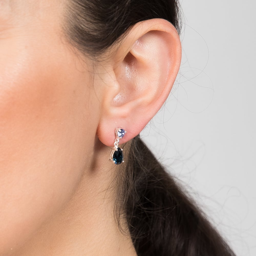 Sterling Silver Montana Crystal and Light Sapphire Drop Earrings