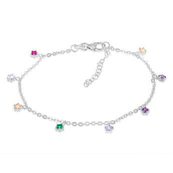 Sterling Silver Multicolour Charm 19cm Bracelet