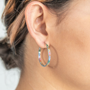 Sterling Silver Multicolour Cubic Zirconia 30mm Hoop Earrings