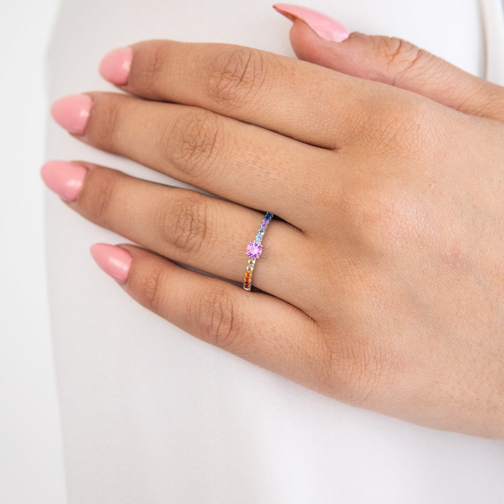 Sterling Silver Multicolour Cubic Zirconia Ring