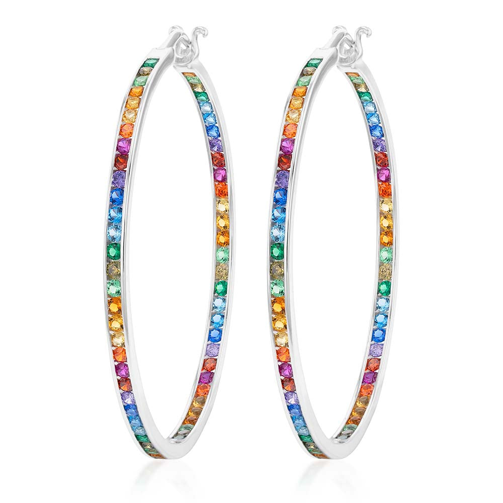 Sterling Silver Multicolour Rainbow Cubic Zirconia 50mm Hoop Earrings