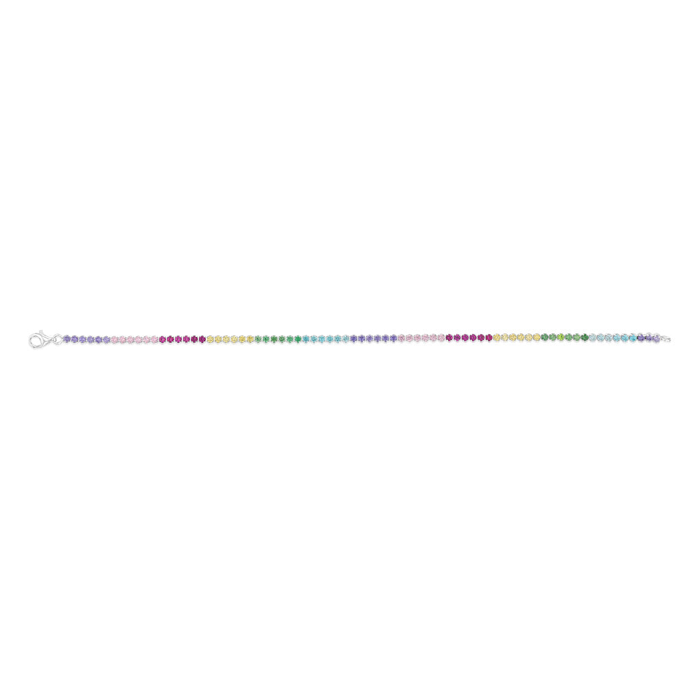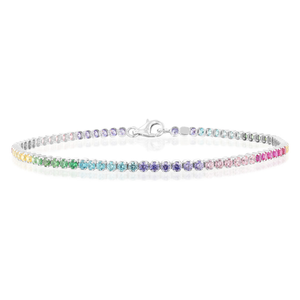 Sterling Silver Multicoloured Cubic Zirconia 2.5mm Tennis 19cm Bracelet
