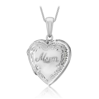 Sterling Silver 'Mum' Locket with Engraved Edge on 46cm Sterling Silver Chain
