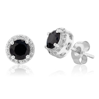 Sterling Silver Natural Enhanced Sapphire & White Zircon Stud Earrings