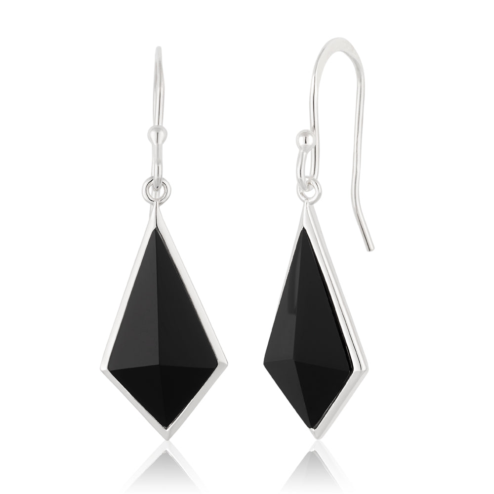 Sterling Silver Onyx Hook Drop Earrings