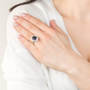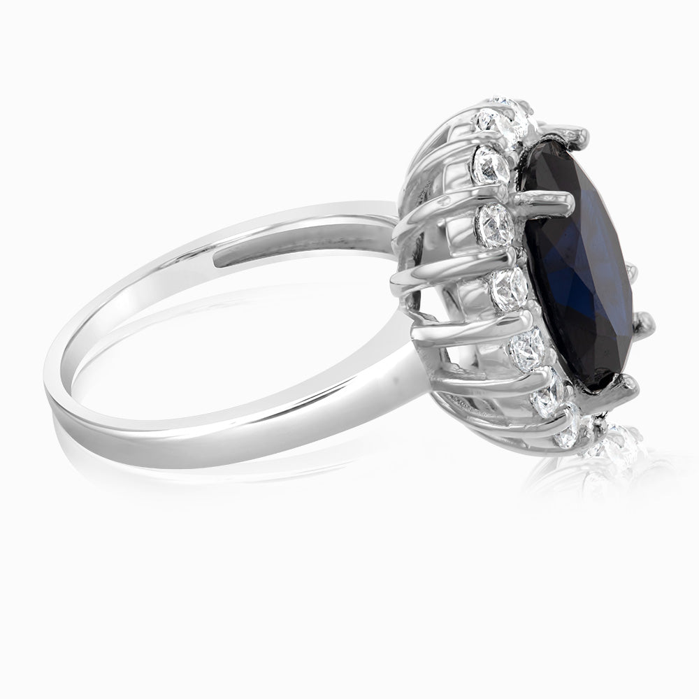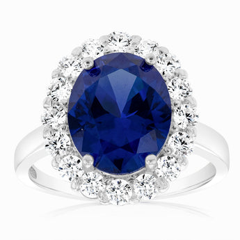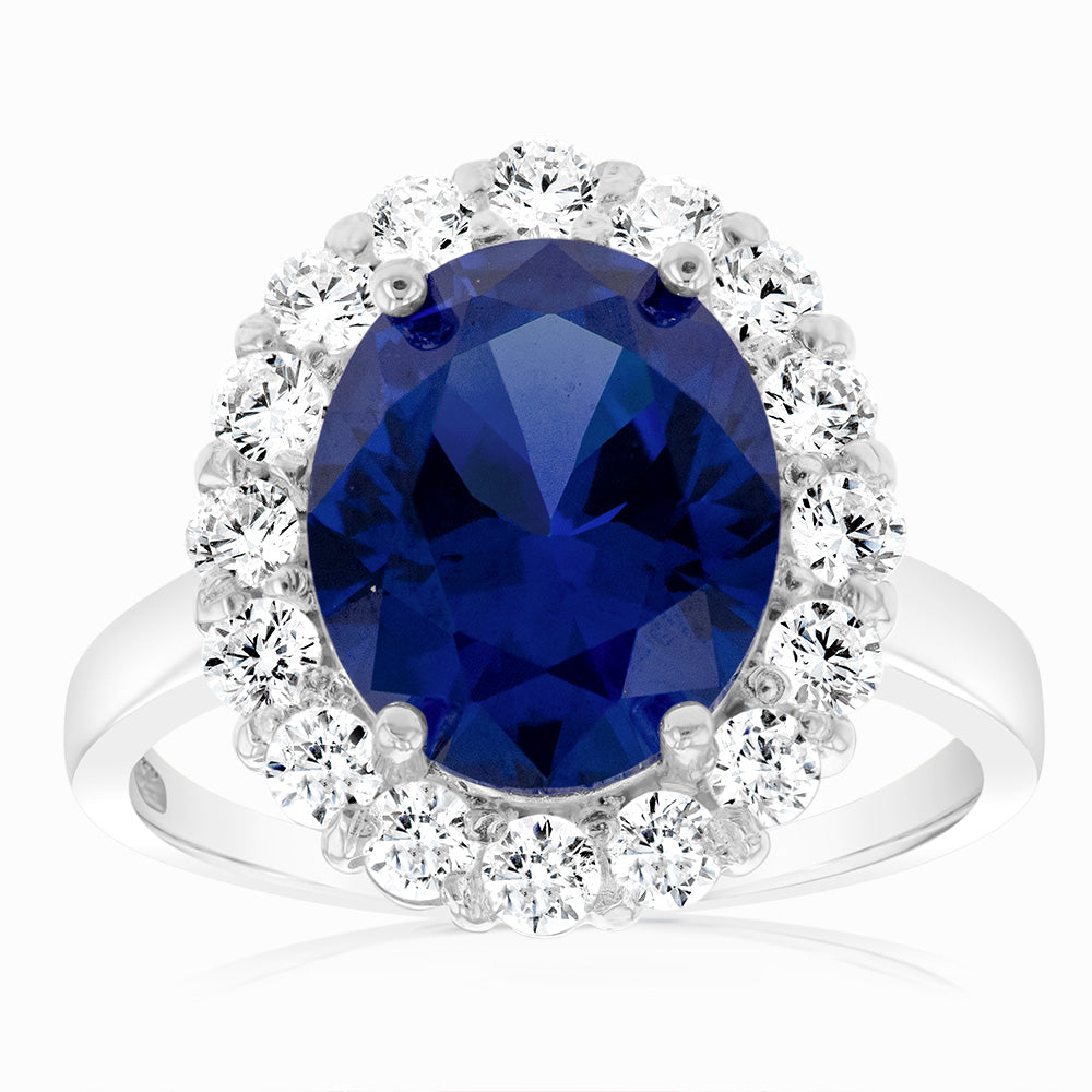 Sterling Silver Oval Blue And White Zirconia Halo Ring