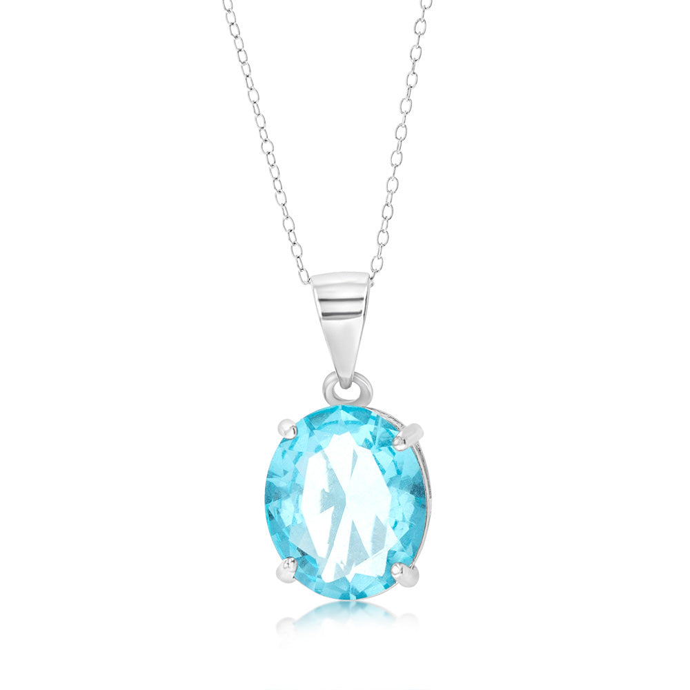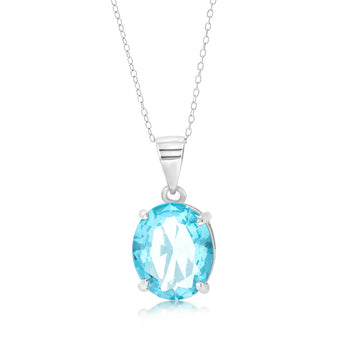 Sterling Silver Oval Created Blue Topaz Pendant On Chain