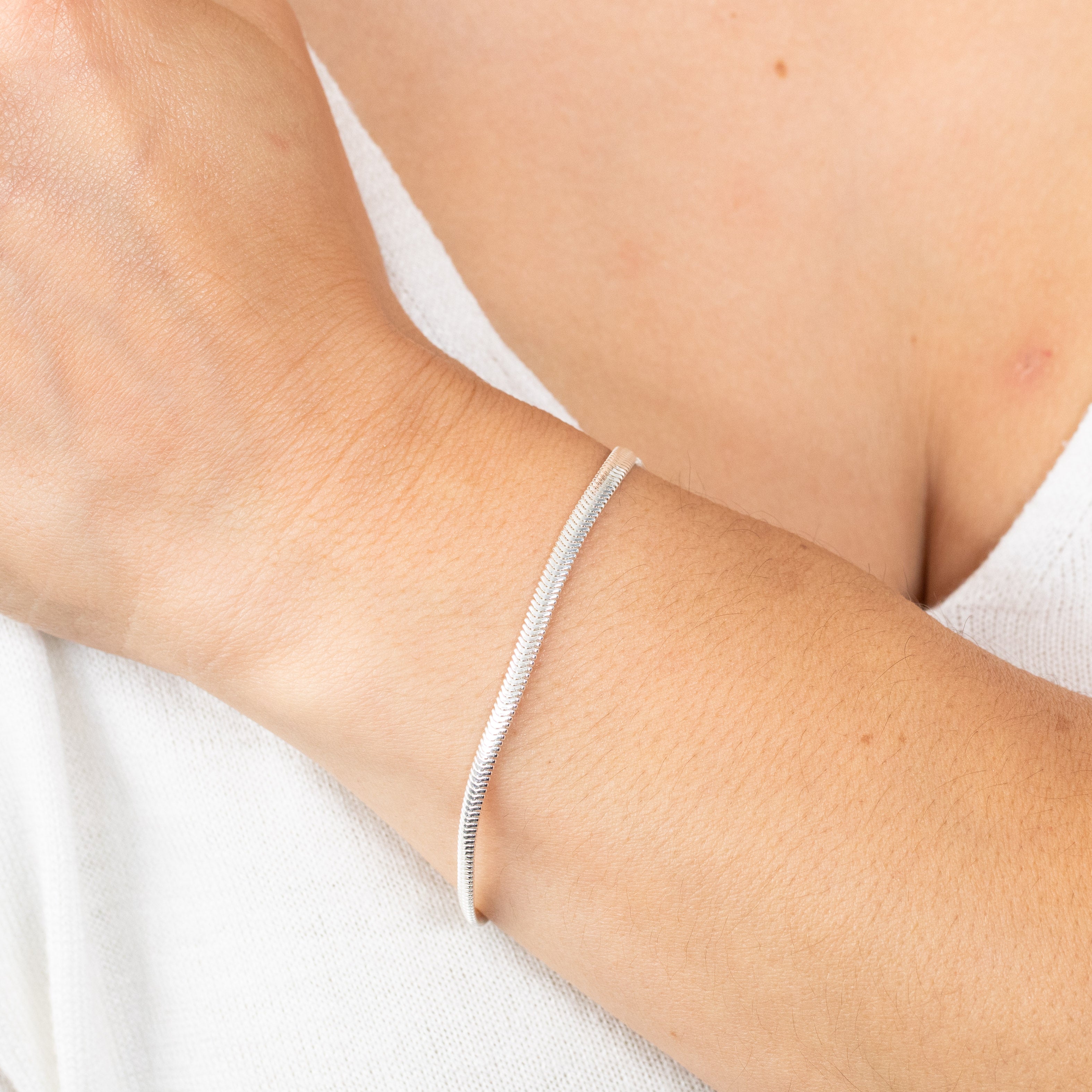 Sterling Silver Oval Snake 17+3cm Bracelet