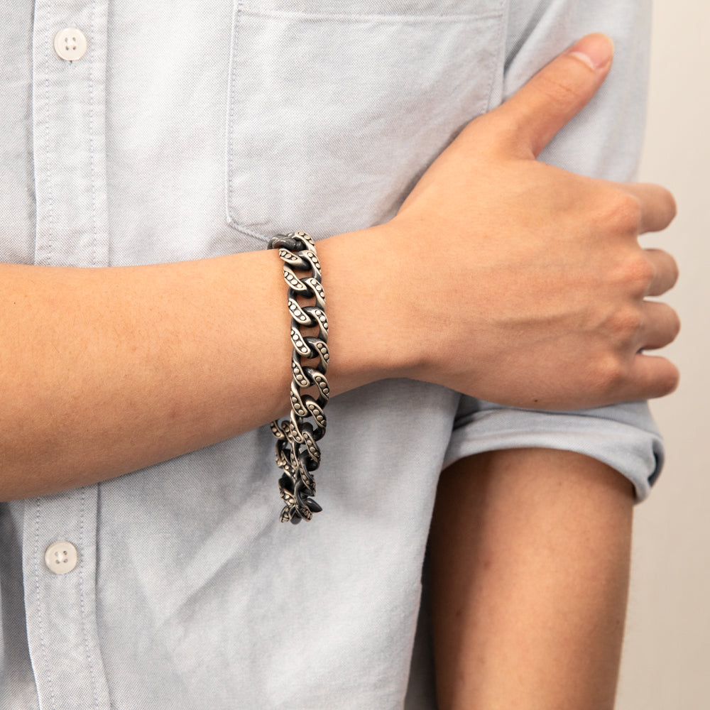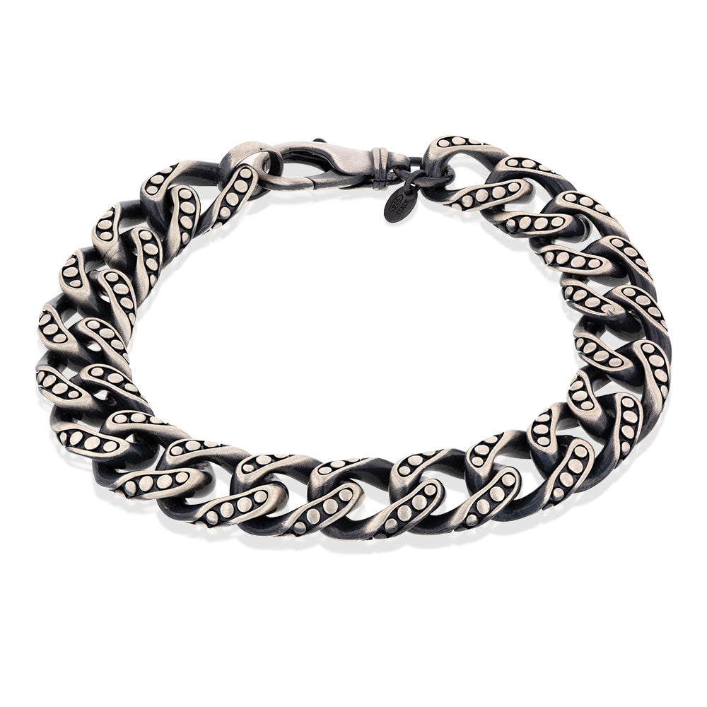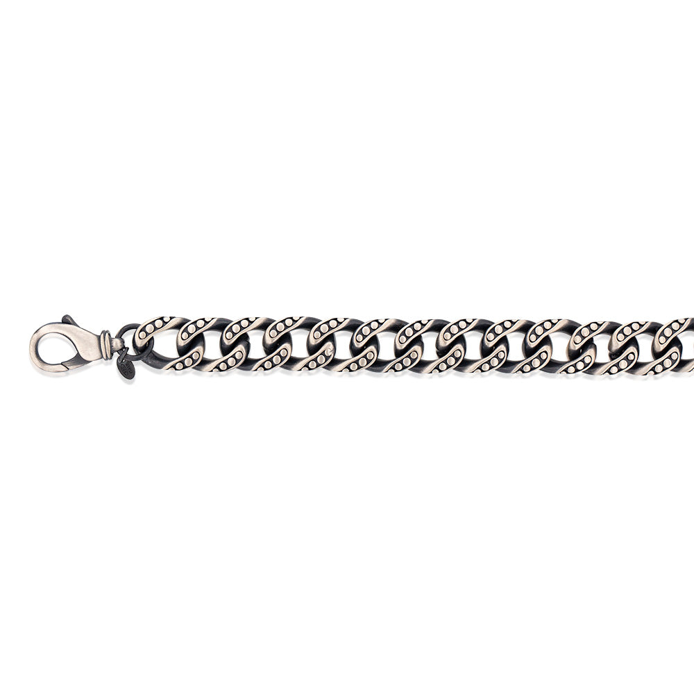 Sterling Silver Oxidised 13mm Dot Pattern Curb 23cm Bracelet