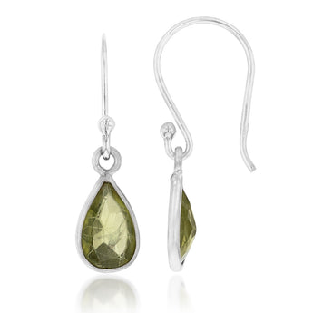 Sterling Silver Peridot Pear Hook Drop Earrings