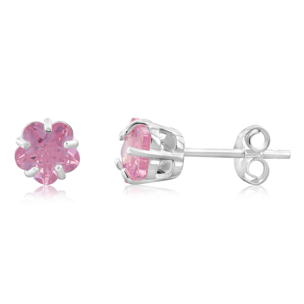 Sterling Silver Pink Cubic Zirconia Studs Earrings