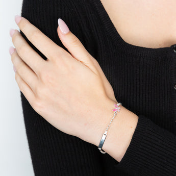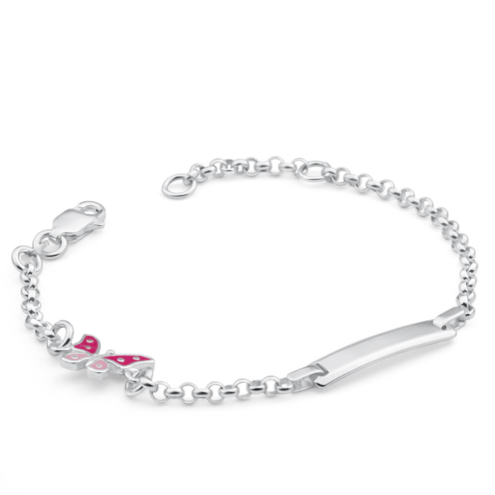 Sterling Silver Pink Enamel Butterfly 16.5cm Bracelet