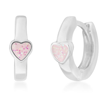 Sterling Silver Pink Enamel Heart Huggie Hoops
